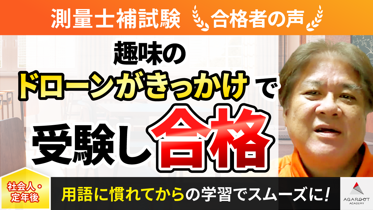 本格的な受験勉強期間2か月だったので合格証明書が手許に届きホッとしました。測量の実務経験もなく測量の知識ゼロの状態から始めましたが、アガルートの講座を開始してからはメインの教材として活用し、受験申請から2か月程度読んでいた市販の受験参考書や高校用の測量教科書は解説を比較して知識を定着させる補助として、アガルートの教材が届いたあとサーっと通しで眺めて次のことに留意して学習を進めることにしました。