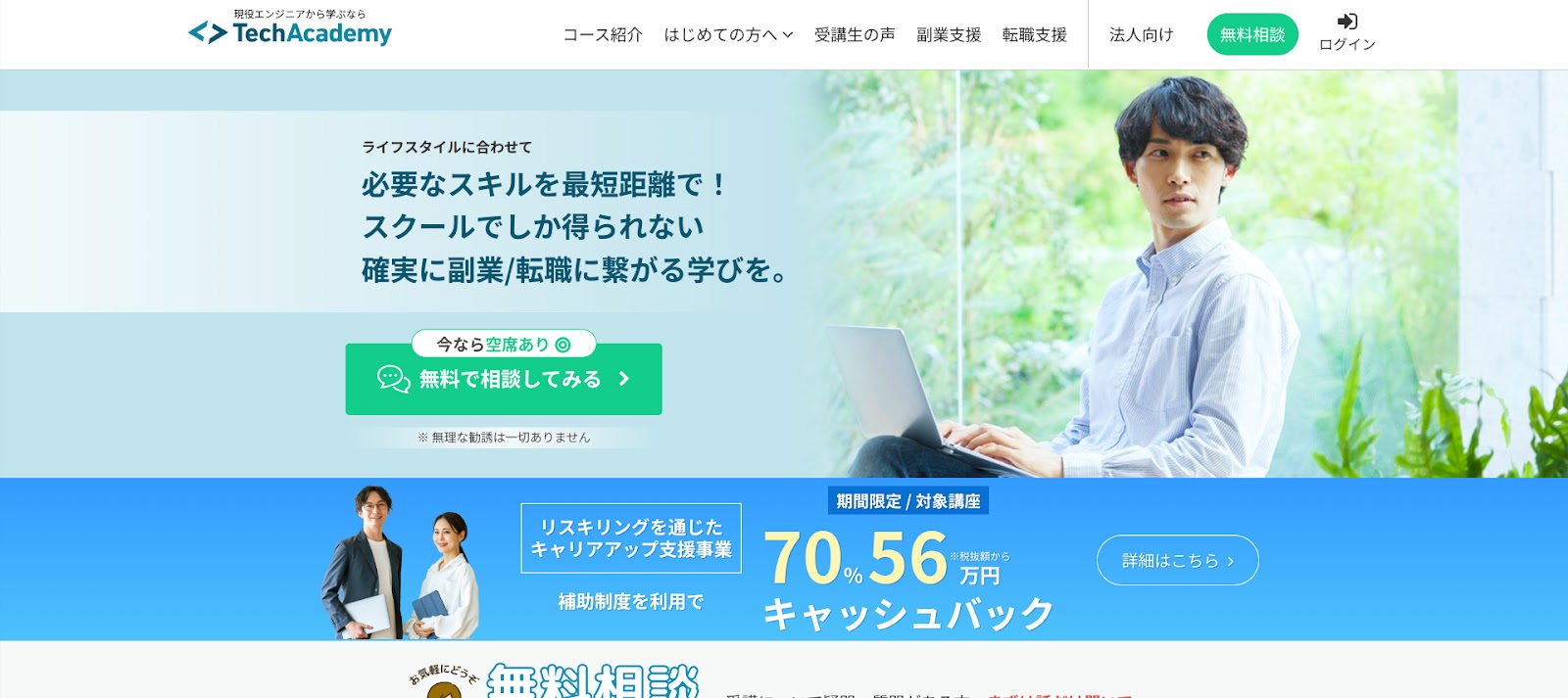 自分が該当するかどうかは、TechAcademy(テックアカデミー)の公式ホームページをご確認ください。