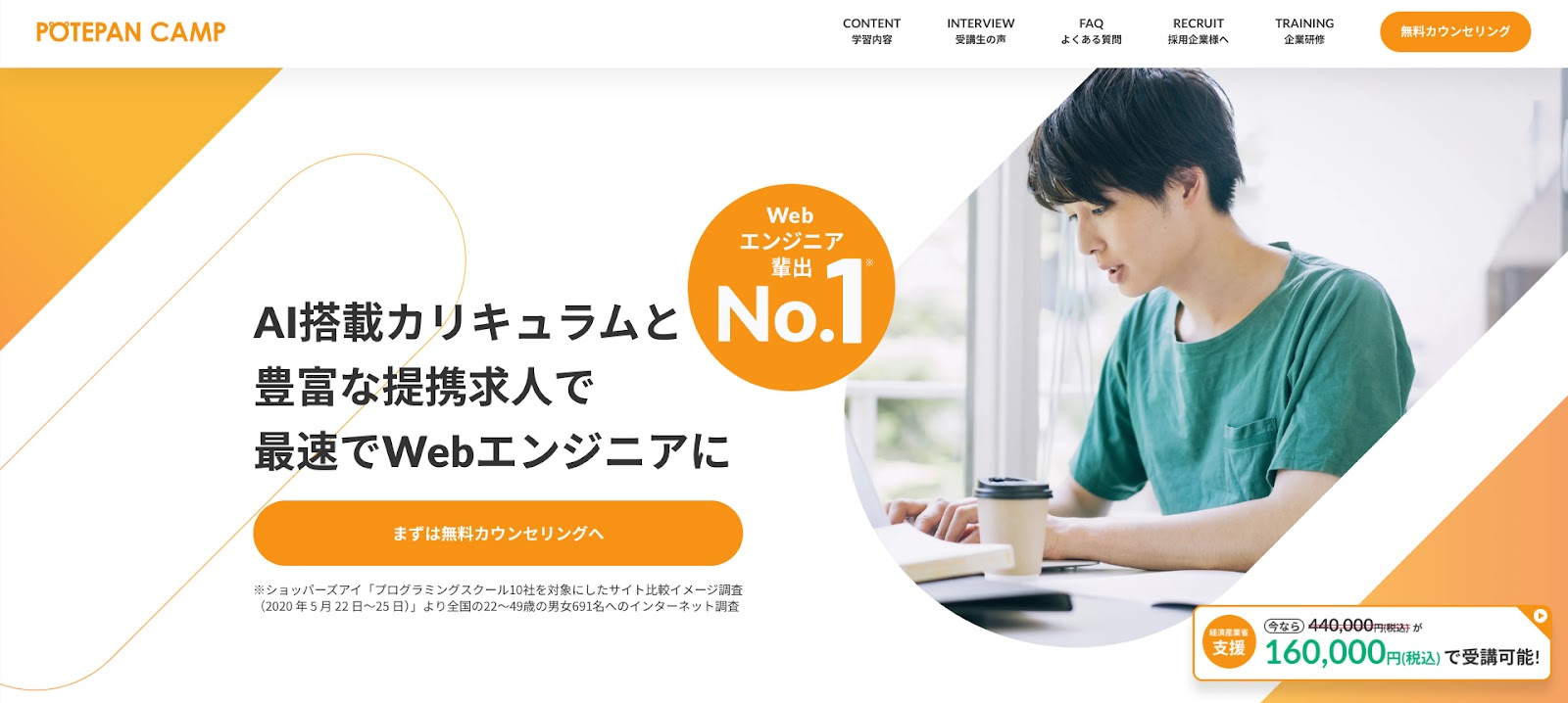 - ポテパンキャンプ|開発経験の積める企業から内定をもらえる