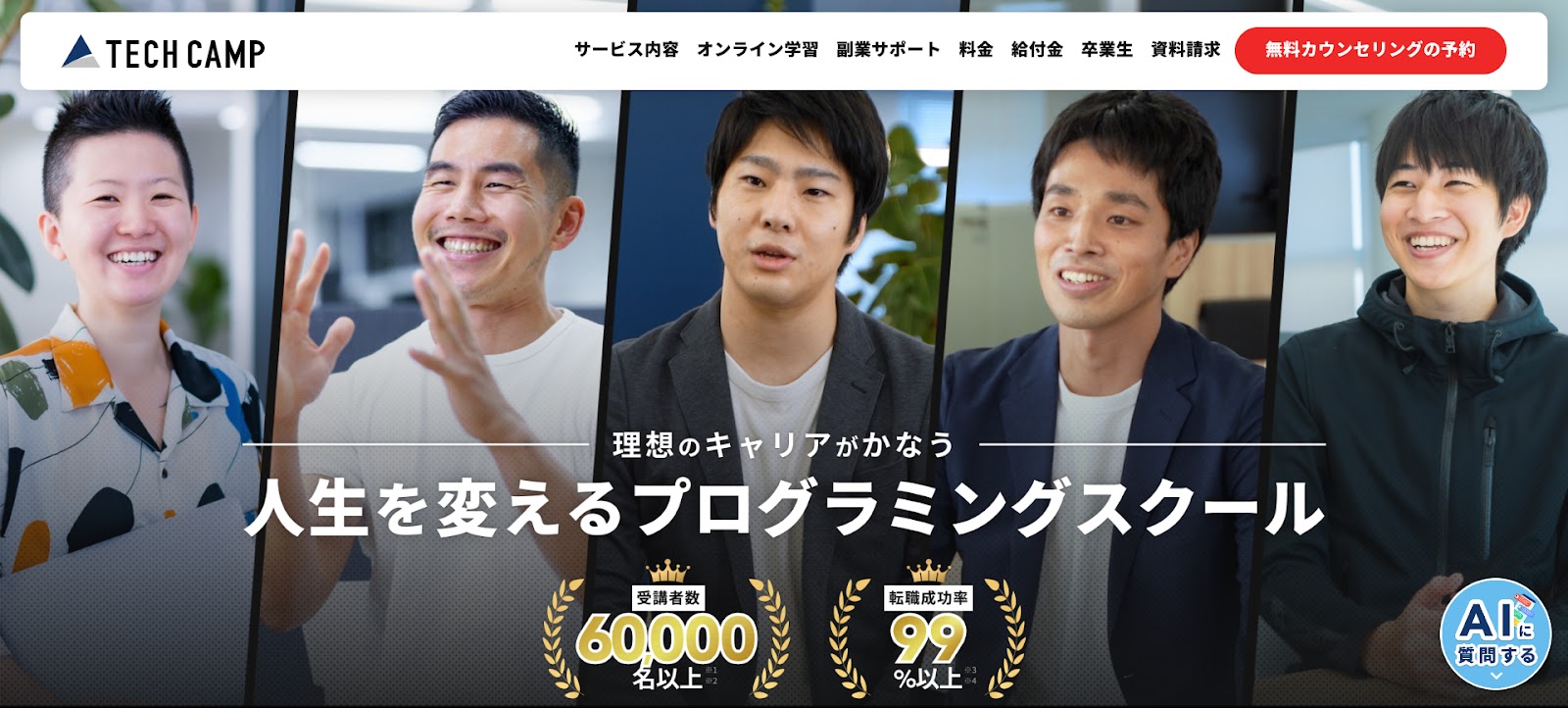 - TECH CAMP(テックキャンプ)|実務的な教育コンテンツと徹底したサポート体制