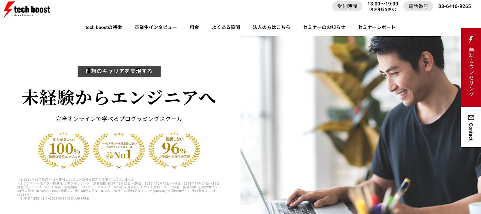 また、WEBエンジニア転職保証コースという転職保証がついているカリキュラムが特徴的です。