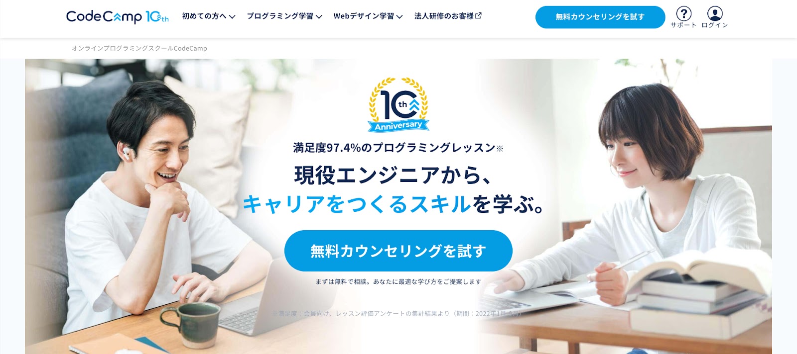 - CodeCamp(コードキャンプ)|現役エンジニアからキャリアをつくるスキルを学べる
