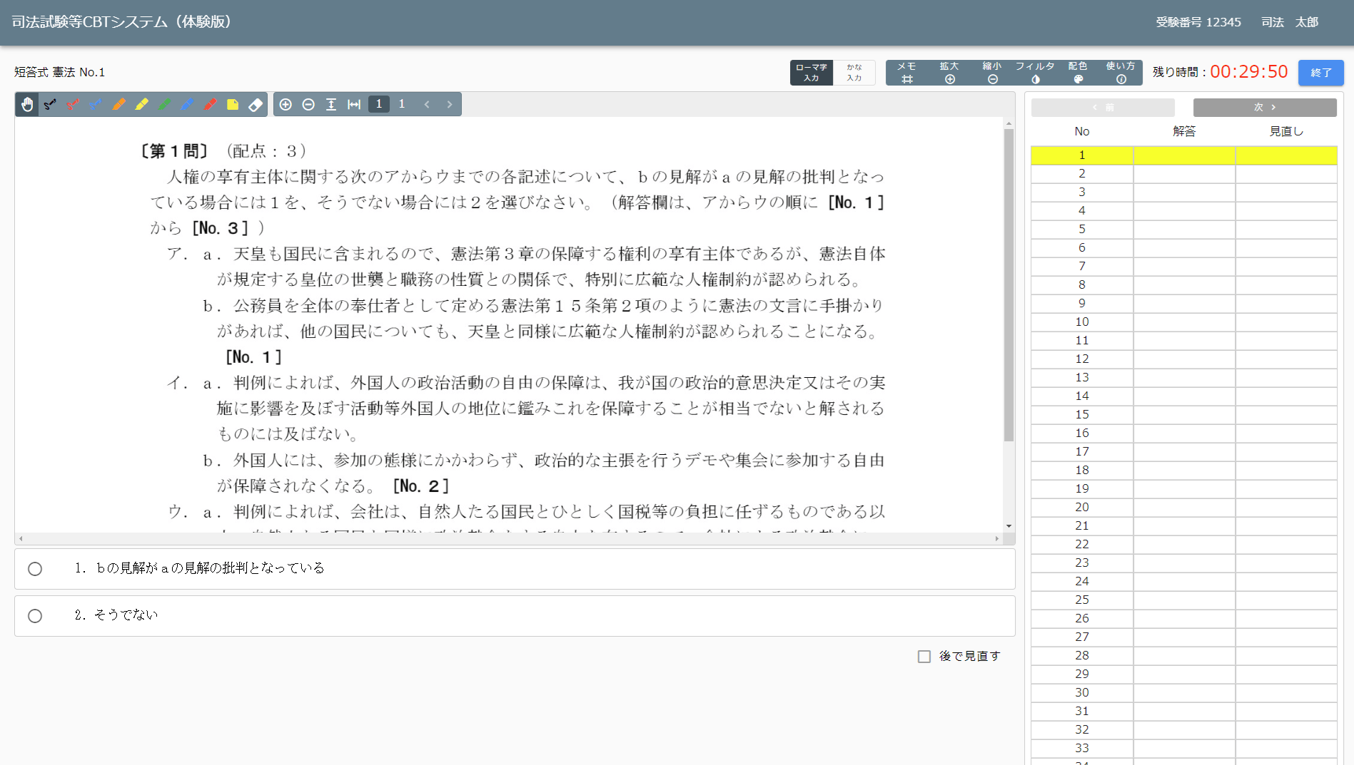 司法試験等CBTシステム(体験版プレテスト)はある?