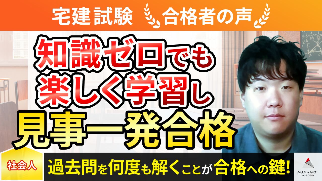 本講座を受講したことで、宅建業法についても高得点を取得することができました。宅建業法についても過去問が非常に重要とはいえ、初見の問題も散見されるため、過去問の丸暗記ではなく、宅建業法の詳細な内容理解も必要かと思います。繰り返しになりますが、丸暗記で解ける問題は限られていますので、条文を自分の中に入れ、自分の言葉で説明できるくらい理解していたほうが安心だと思います。