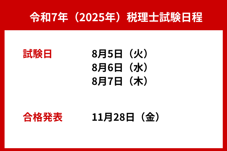 2025年(令和7年)における税理士試験の試験日は、2025年8月5日(火)〜8月7日(木)に予定されています。