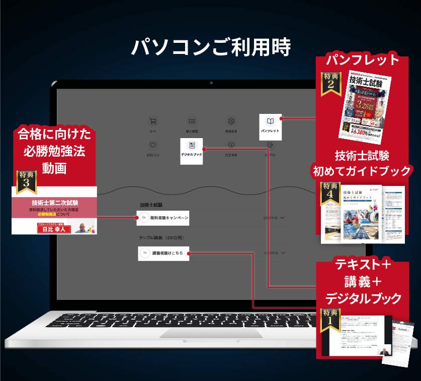 無料体験(①テキスト②講義③デジタルブック)
