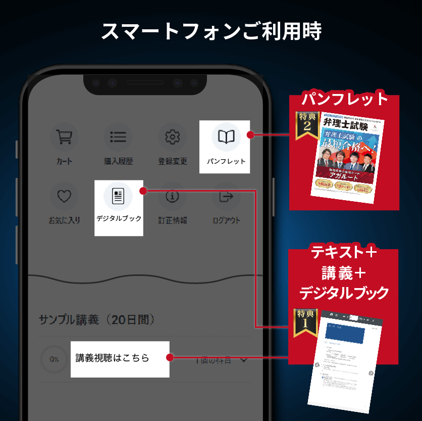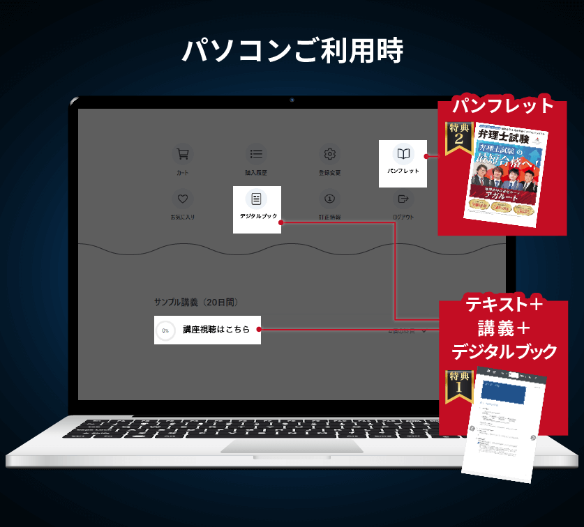 無料体験(①テキスト②講義③デジタルブック)