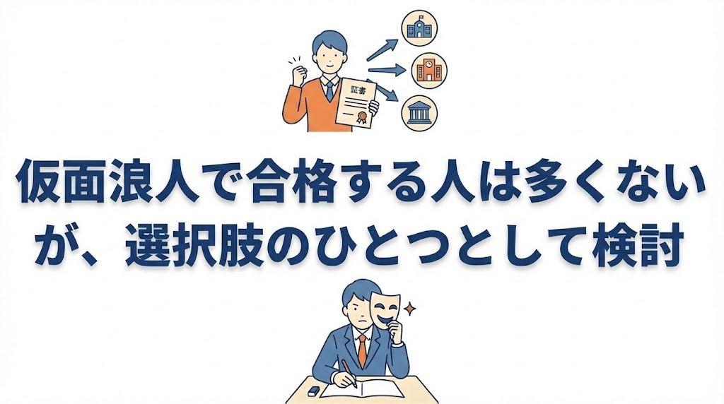 仮面浪人で合格する人は多くないかもしれませんが、選択肢の一つとして検討できると言えるでしょう。