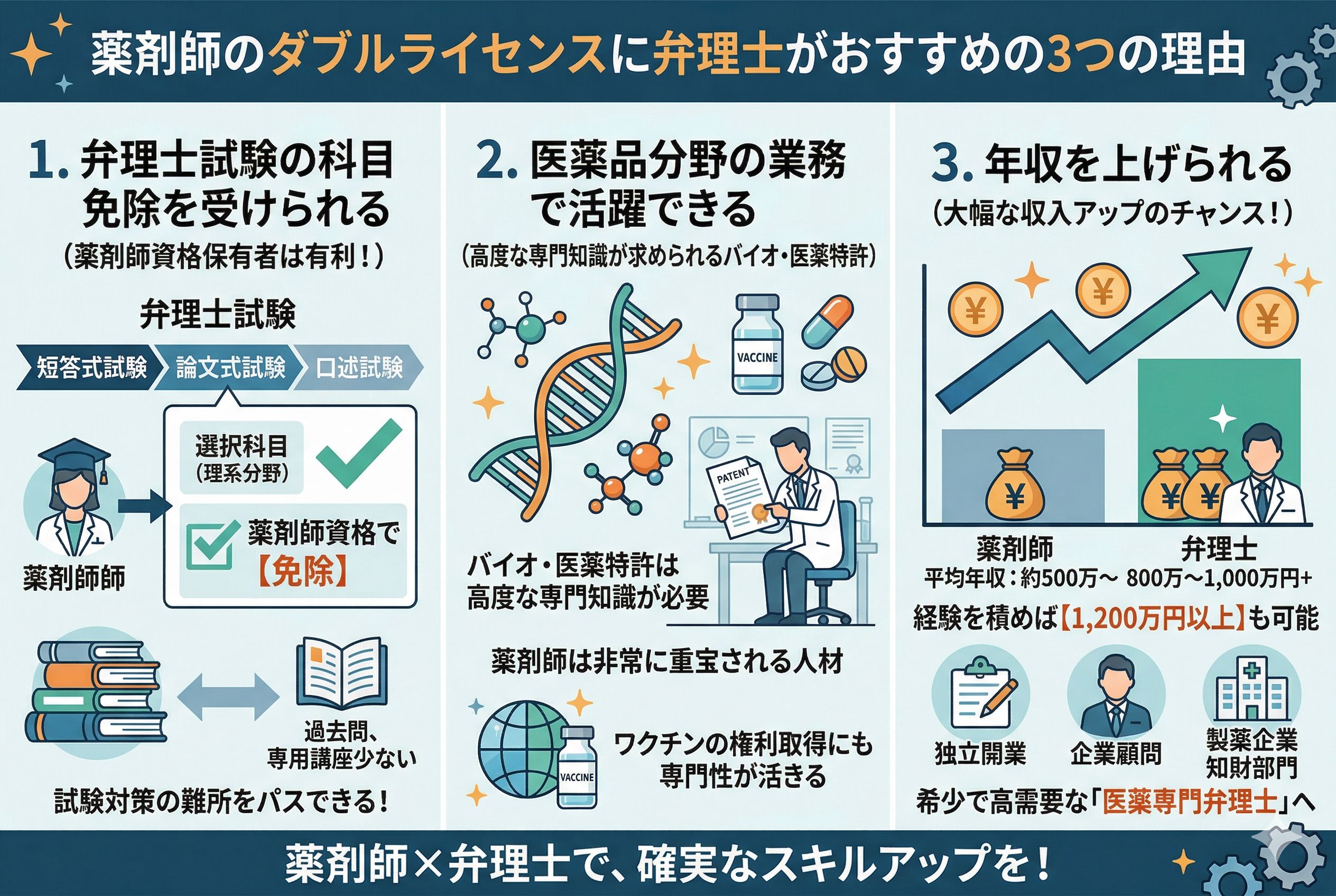 薬剤師のダブルライセンスにおすすめは弁理士!免除制度を活用して年収アップ!