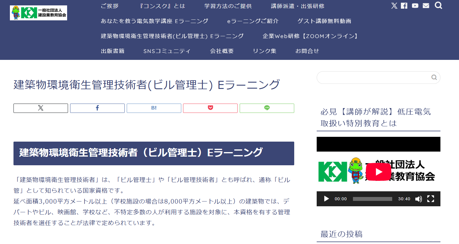 | 一般社団法人 建設業教育協会 | eラーニング利用期間6か月:29,700円(税込) | eラーニングに対応 最短ルートでの得点を意識した構成 | メールによる質問制度 |