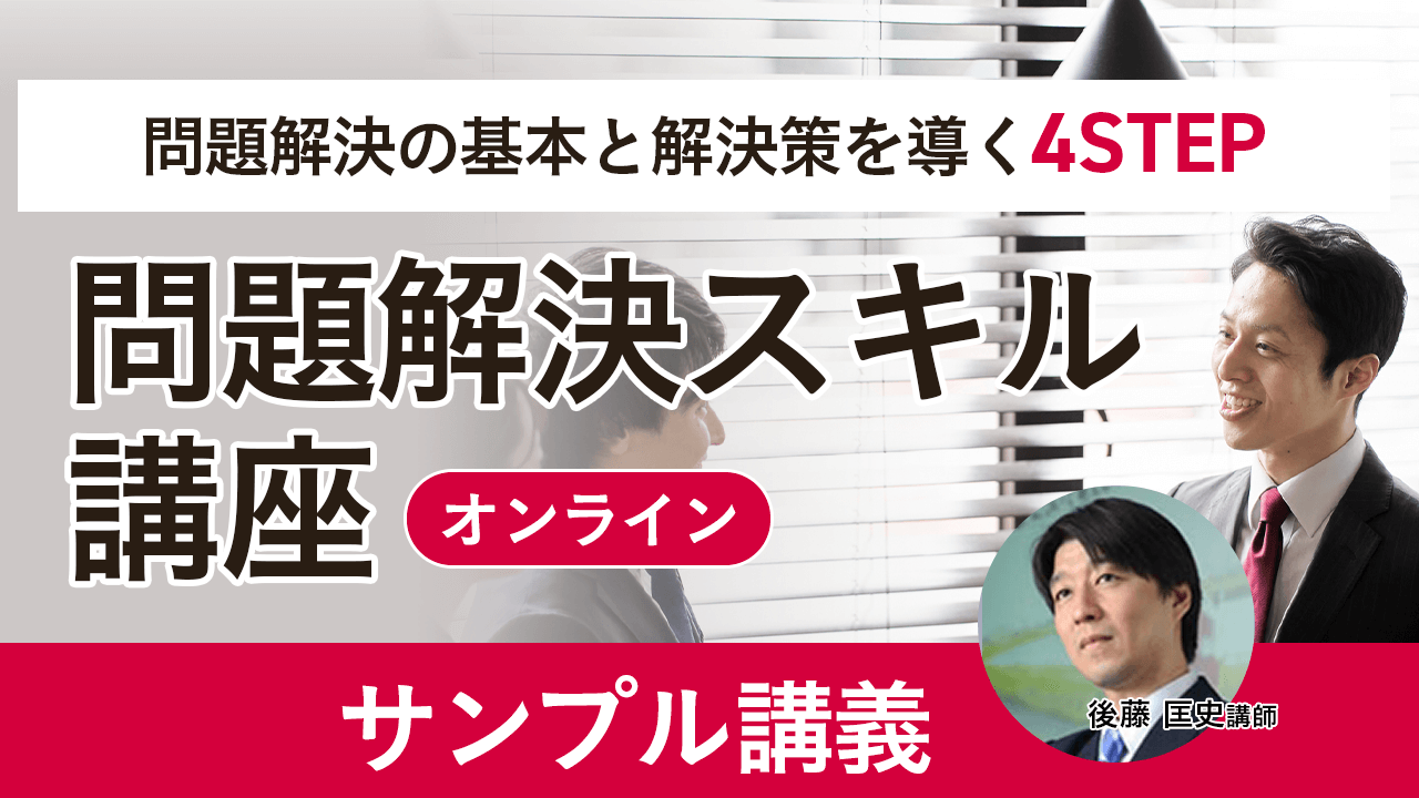この講座では、あらゆる問題に適用可能な普遍的な問題解決ステップについてレクチャーと演習により学び、ビジネス現場で使える問題解決スキルを身に付けられます。