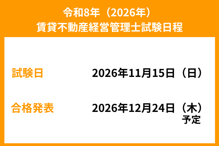 なお、2026年(令和8年)度の賃貸不動産経営管理士は11月15日(日)に行われます。