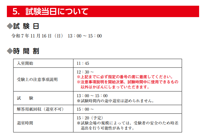 なお、詳細な会場については各自が受験票で確認する必要があります。