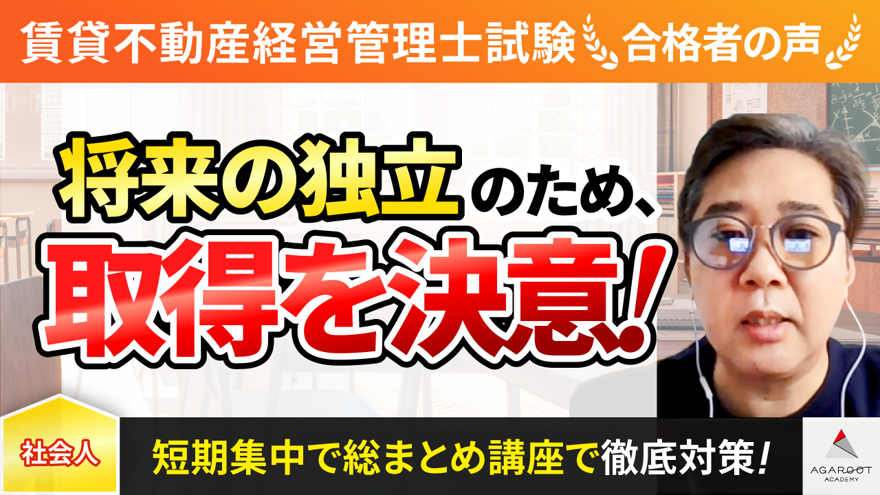 合格者の声|将来の独立のため、取得を決意!あまり時間がなく、短期集中で学習すべく、総まとめ講座で徹底対策! 米沼 克彦さん