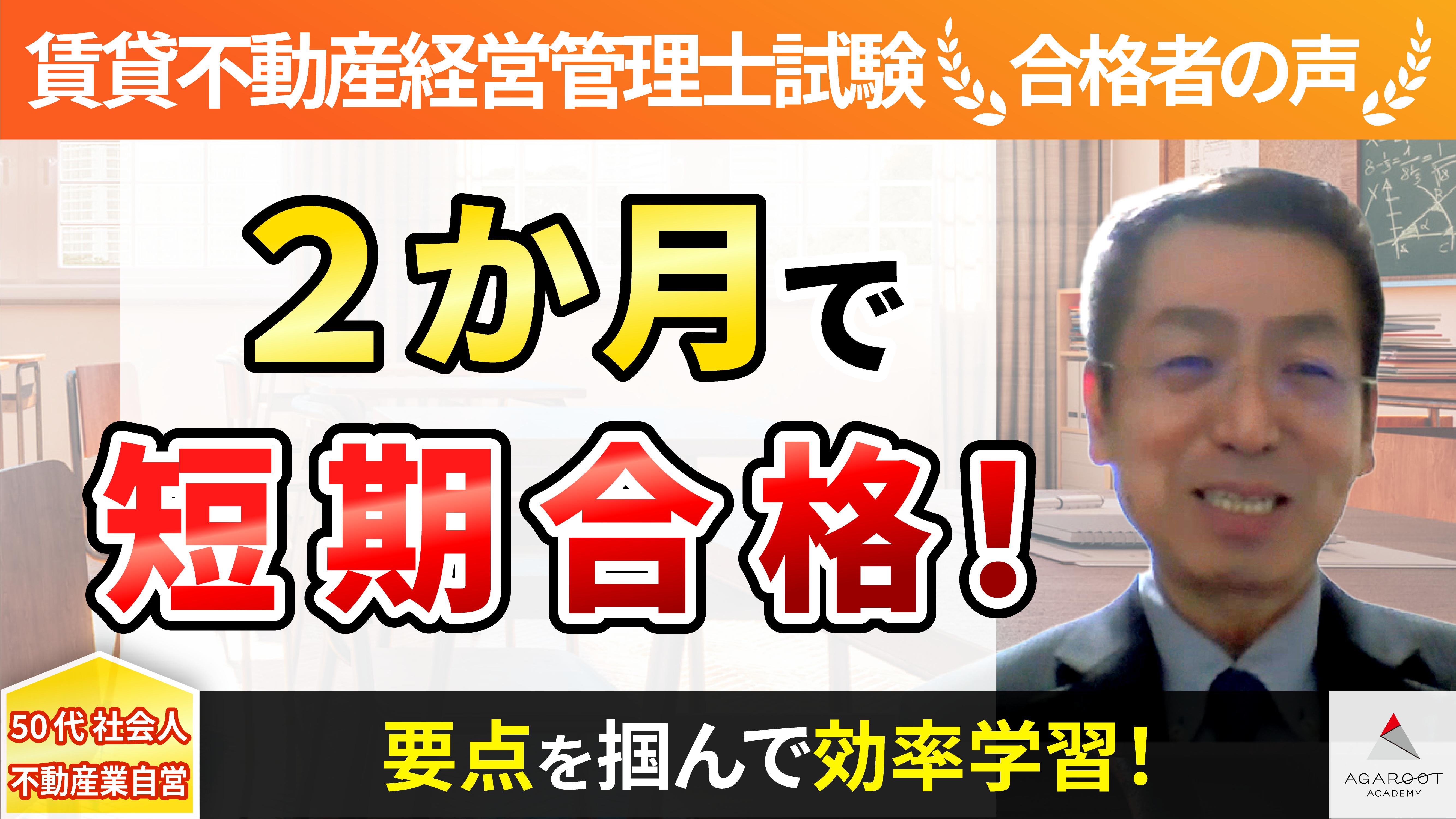 合格者の声|賃貸不動産経営管理士が国家資格になったことによる重要性を感じ、受験を決意!総まとめ講座、ヤマ当て模試での理解不足箇所を重点的に学習し試験に備え、合格へ! 作道 康人さん