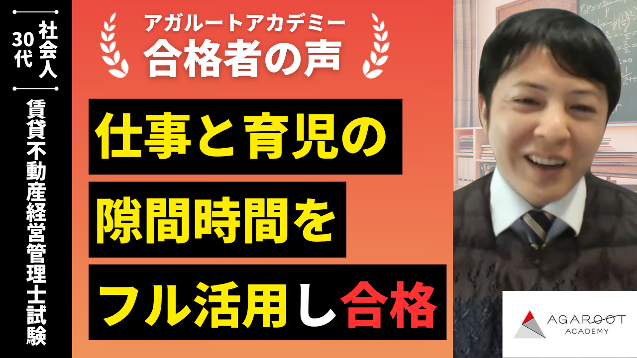 私には賃貸の知識がなく、試験の難化の話を聞いていたのでどこかの講座を受けようと判断しました。そこで、インターネット等で調べていると、アガルートの合格率が1番高く、口コミも良かったため受講を決意しました。
