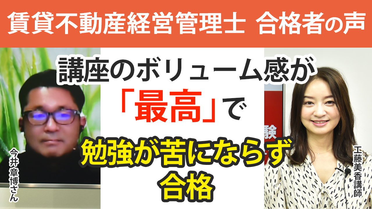 合格者の声|講座のボリューム感が「最高」で勉強が苦にならず合格 今井 章博さん