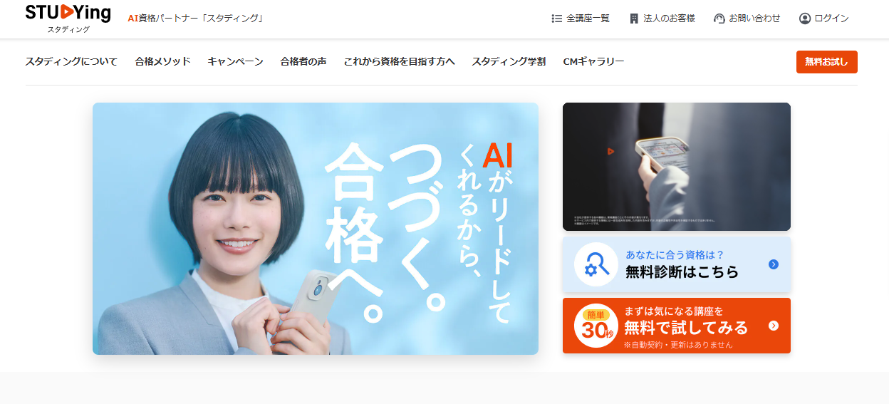 | スタディング | ・累計1,600名以上の合格体験談が公開 |