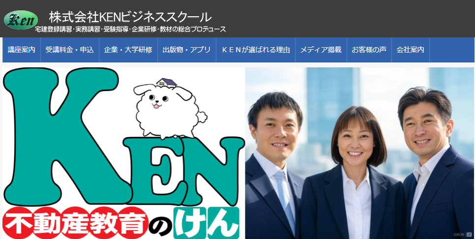 | Kenビジネススクール(基本講座) | 53,020円 | 情報なし | 不動産系資格に特化 | オリジナルアプリや市販もされているオリジナル書籍を使用。 | 質問制度の記載なし |