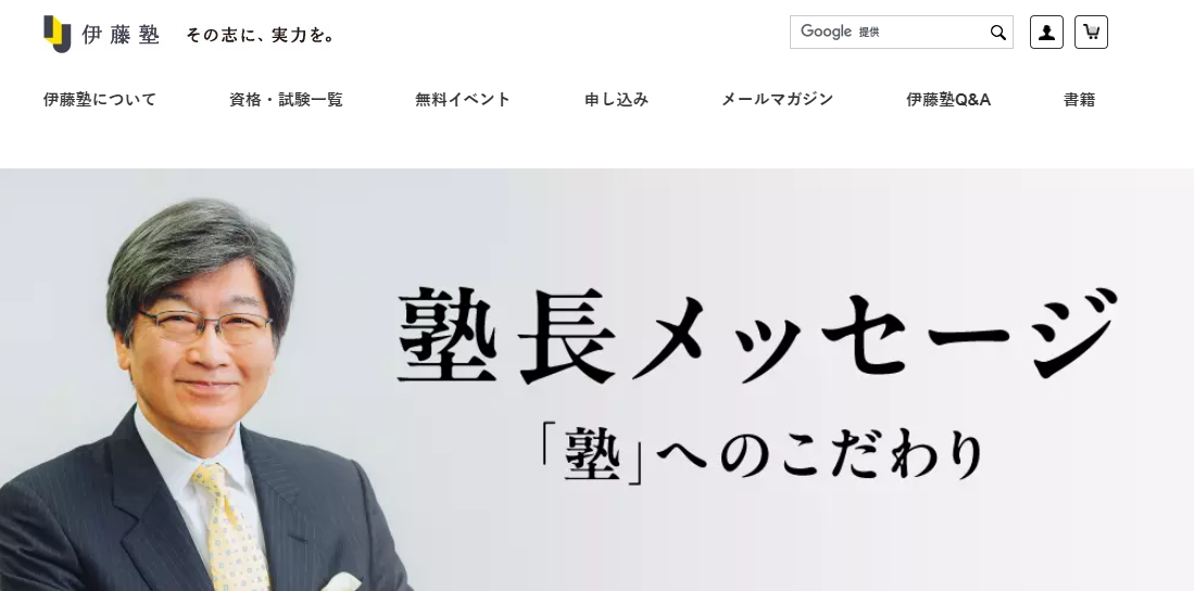 | 伊藤塾(合格講座) | 39,800円 | 情報なし | サポートが手厚い | オリジナルテキストのARアイコン読み込みで映像講義の視聴が可能。 | 講義は1コマ30分にまとまっているため、スキマ時間を使って学習しやすい |