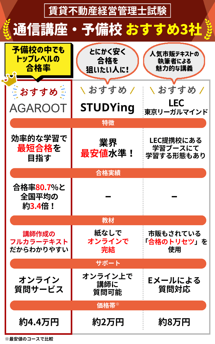 賃貸不動産経営管理士通信講座・予備校おすすめランキング【2025年12月】安いのはどこ?10社の費用を比較!