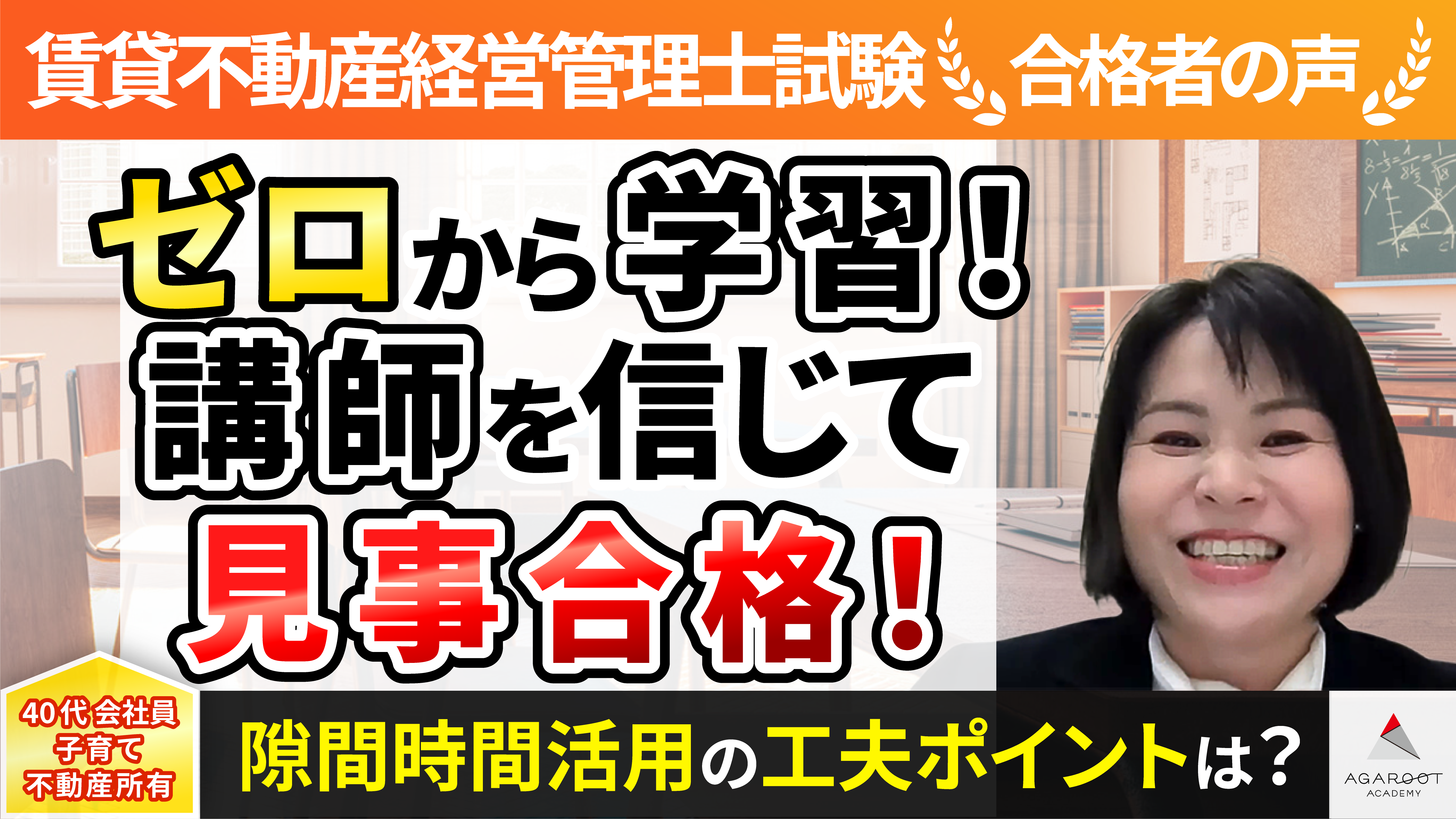 アガルートアカデミー賃貸不動産経営管理士試験講座の実績!