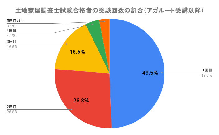 アガルートアカデミーを受講後は1回目の受験で合格した人が半数に上りました。もちろんこの中には一発合格者も含まれています。