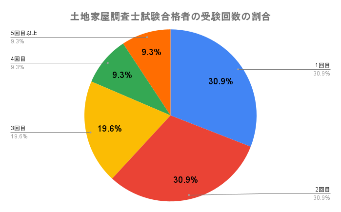 資格試験予備校アガルートアカデミーが受講者を対象に実施した「土地家屋調査士試験合格者の受験回数」を見てみましょう。
