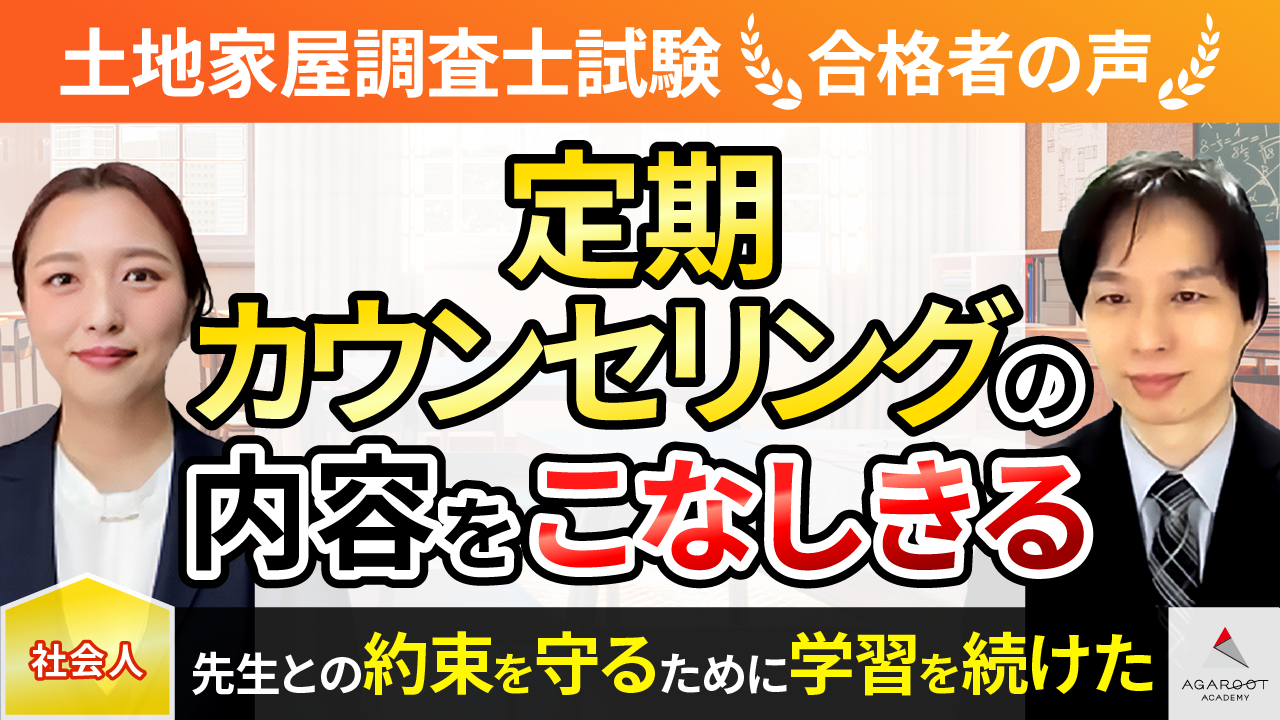 また学習し始めから、試験直前まで色んな不安な襲ってきます。色んなタイプの先生がいらっしゃるので、どんな方にもどんな不安にも適応していると思います。自分の状況、心境に合わせカウンセリングの講師を選択し前向きに学習できる環境を整えていました。
