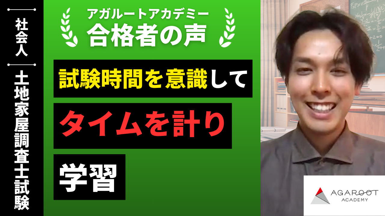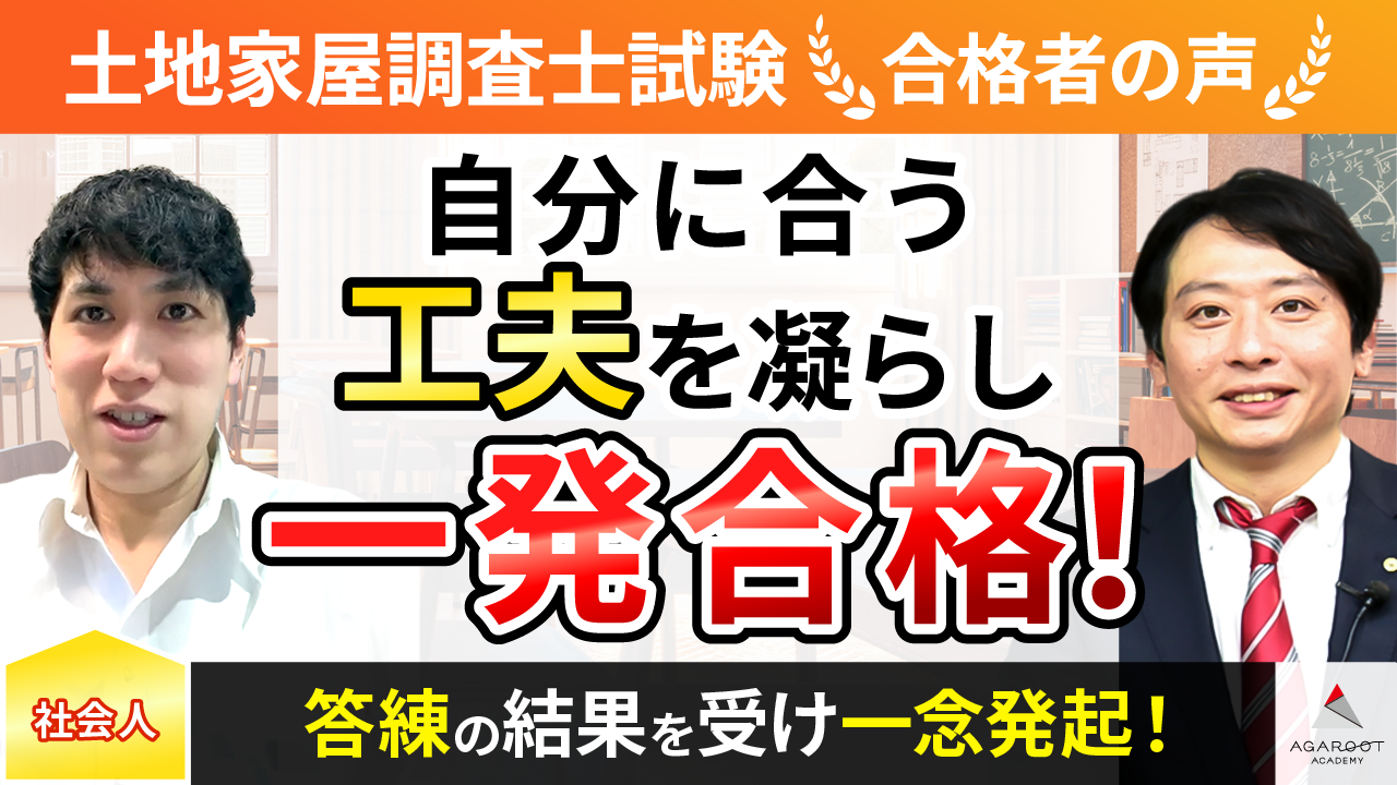 まず、会社員として働いているため通信での学習形態をとりたいと考えていました。また、その通信形態で学習できる予備校のサンプル講座やテキストを見て、その中でアガルートの講座が自分にとって合っていたため、アガルートを予備校として選択しました。