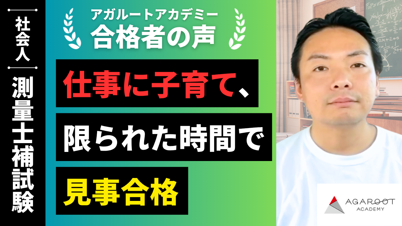 測量という未経験の分野に挑戦するにあたり、独学では3ヶ月で合格できる試験内容ではありませんでした。アガルートに出会えたことに感謝しています。