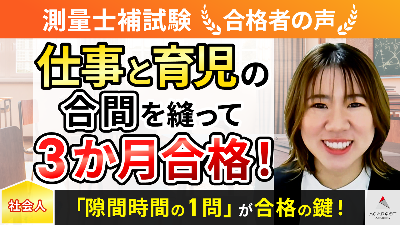 分かりやすい解説と質問ができることを選びました。自分のペースで学習を進めたいので、通信講座をと思いましたが、たまたま開いたアガルートのウェブサイトでは、まずは測量士補だけ等、様々なプランがあり、自分に合った選択をできたのですぐ申込みました。