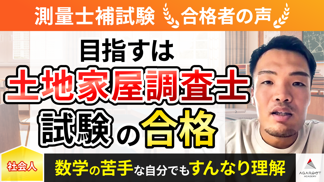 初めは市販のテキストを3冊ほど買って独学で測量士補の勉強をしていたのですが、このままでは合格は難しいのではと思い、アガルートを受講しました。申し込み前に、受講相談のメールで合格ラインまでいけるかどうか相談させて頂き、十分可能との回答を頂いたのもきっかけのひとつです。