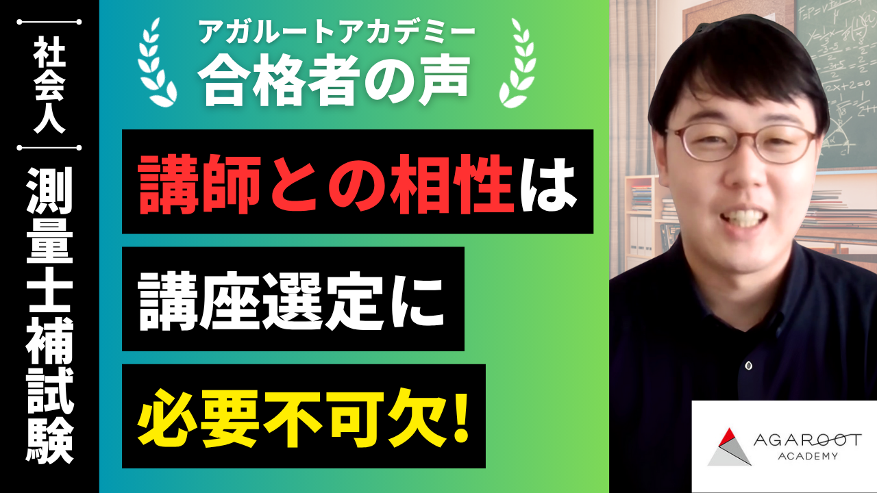 試験合格を目指す上で効率的に勉強するには、講座を受講するほかないと考えておりました。受験生の先輩や過去に合格した知り合いに色々と伺うとアガルートが一番無駄がなく、効率的に学習できると皆様仰られていました。そこでアガルートを選びました。