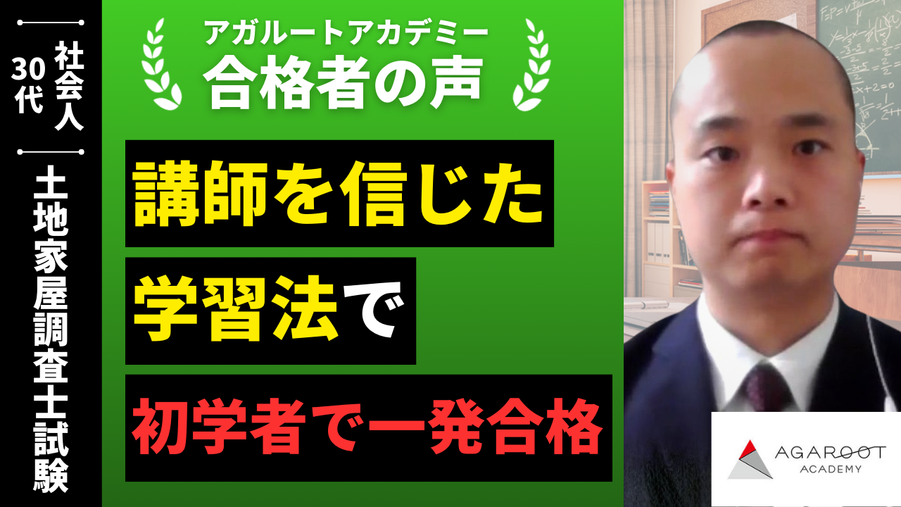 地方に住んでいるため、オンラインでの講座を探していました。また、発表されている合格率や金額、合格特典など総合的に判断し、アガルートに決めました。