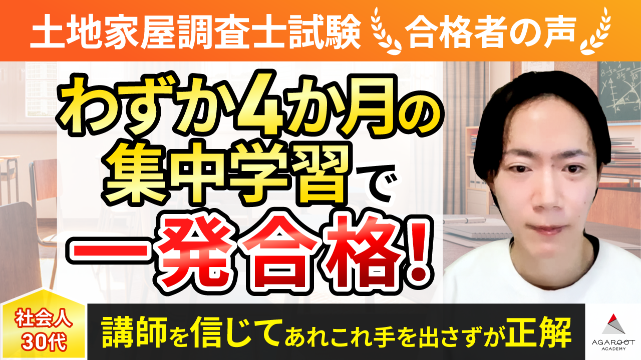 合格実績のある予備校の中から、サンプル講義を視聴した結果、最も自分に合っていると感じたアガルートさんに決めました。
