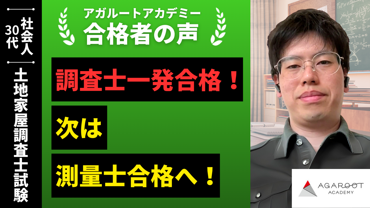 時間があまりないので端的に。講師の皆様方、事務局の皆様方、特に定期カウンセリングで直接お世話になった佐橋先生には言葉では言い表せられない感謝の気持ちでいっぱいです。土地家屋調査士試験を通じて、学ぶ力を身につけられ、自分に自信を持てるようになりました。私の人生を大きく変えてくれました。本当にありがとうございました。