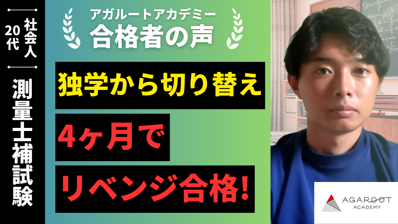 昨年測量士補の試験に挑みましたが、不合格となりました。独学での学習でしたので、自分自身の甘さから全く学習に身が入りませんでした。また、購入したテキストも内容のイメージ、計算、勉強の進め方など、ほとんど理解ができませんでした。