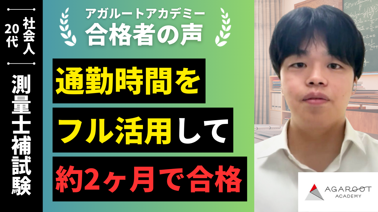 試験まで時間があまりない中で、隙間時間を活用しないといけないと感じましたので、動画による勉強をしたいと考えました。そこで、通信講座を調べていく中でアガルートを見つけ、合格率やサンプル動画がわかりやすく受講を決めました。