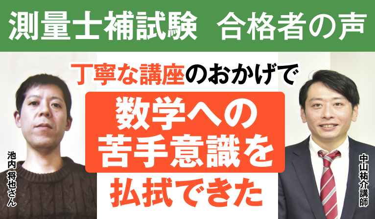 測量士補試験に出題された計算問題がギュッと凝縮された本講座のおかげで、数学への苦手意識を払拭できたと思います。