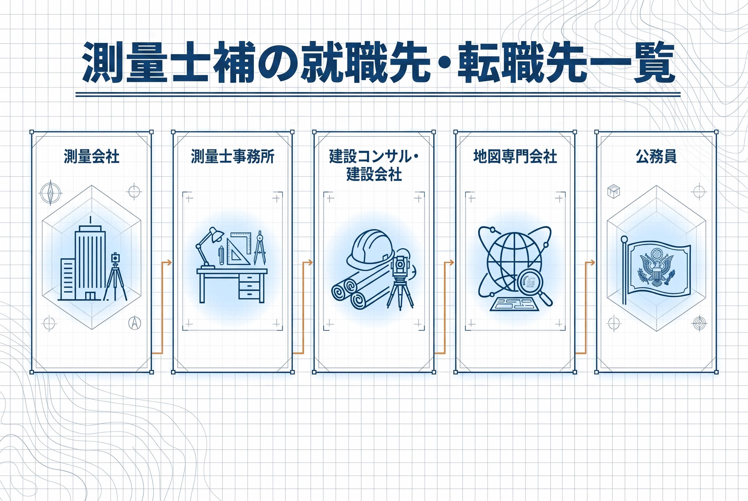 測量士補の主な就職先・転職先としては、以下の5パターンが代表的です。