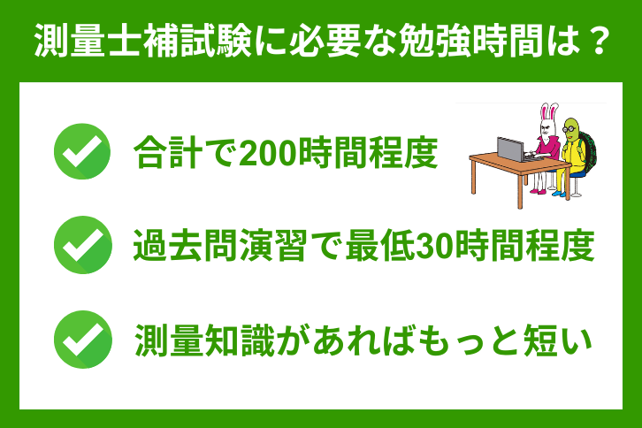 - 測量士補試験の合格に必要な勉強時間は、一般的に200時間