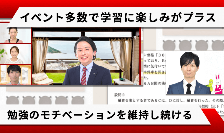 学習進捗の時期に合わせてアガルートのOBOG座談会、実務家をお招きしての講演会など不定期でイベントを実施する予定です。イベントに参加することで、さらなるモチベーションの向上を図ることができます。