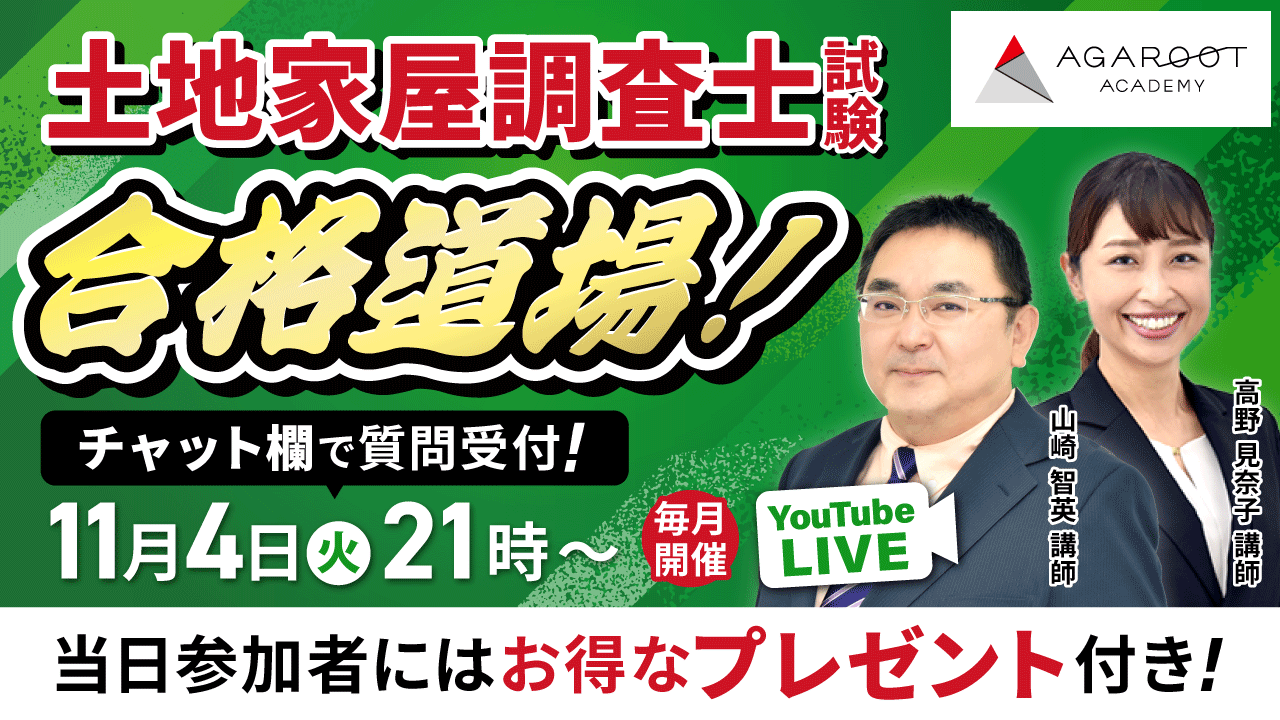 アガルートアカデミーでは、今年こそは土地家屋調査士試験合格を勝ち取りたいという受験生の方向けに2025年11月4日(火)21:00よりYouTubeLIVEで講師が受講相談会を実施します。