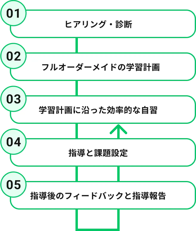 現在の実力をしっかりと見つめ直し、個人の特性に合わせた学習プランを具体的に提示します。
