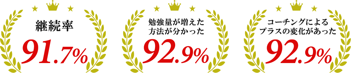 個人差はあれど、一定期間、コーチングを受けていると、自分のことがよくわかるようになり、自分の弱点を自然と前向きに克服できるようになっていきます。90日程度しっかり取り組むと、生活習慣や行動パターンが変わり、成績が上がるだけでなく、確実に望む自分に変わることができます。