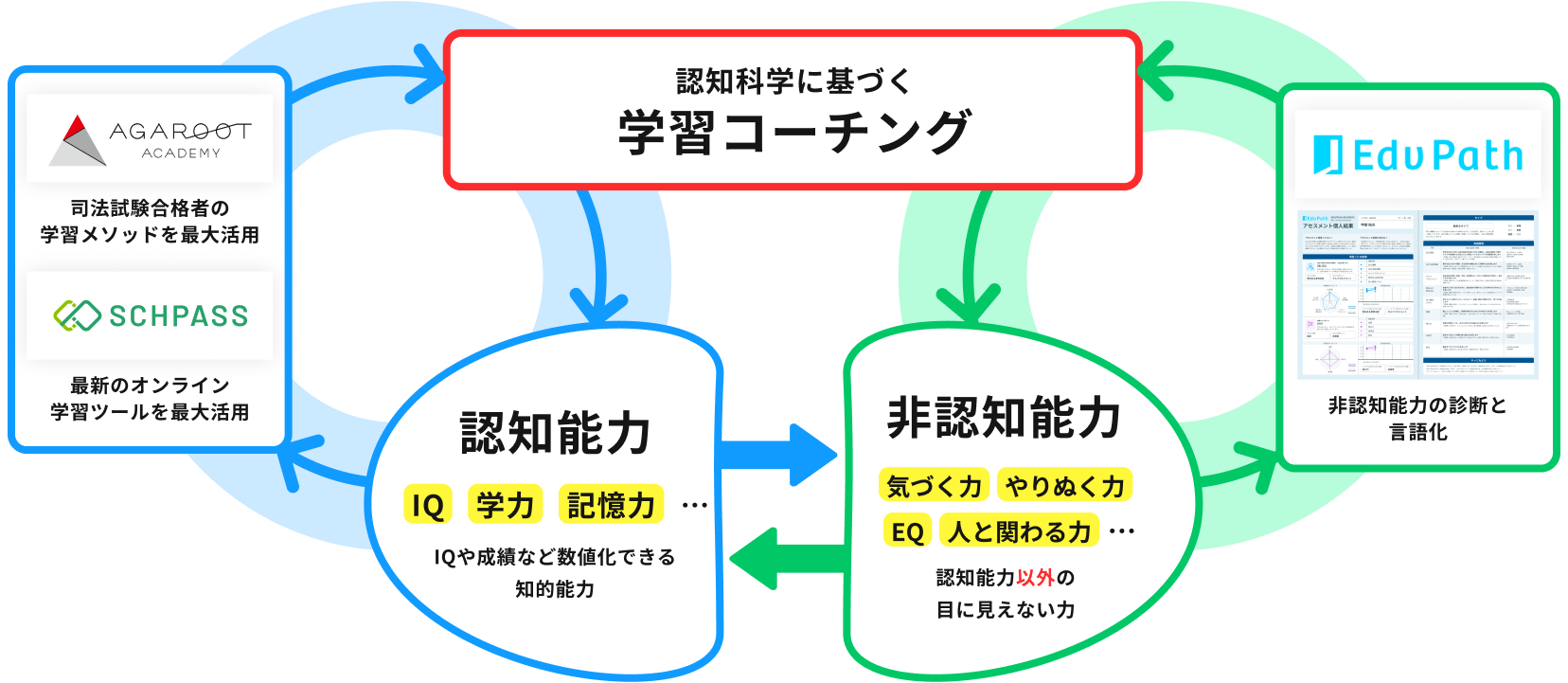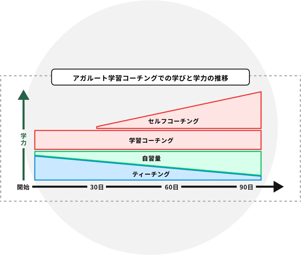 アガルート学習コーチングは、このコーチングを、小学生から高校生・既卒生を対象とした、学習用プログラムにカスタマイズしたアガルート独自の指導メソッドを活用したサービスです。