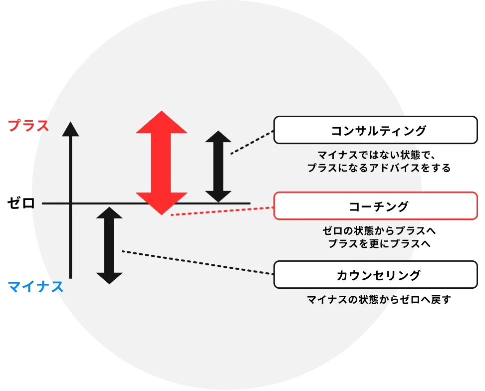 コーチングは、一般的には成人を対象とし、ビジネス・スポーツの現場で多く活用されています。似たものとしてカウンセリング、コンサルティングがありますが、コーチングは別の概念です。