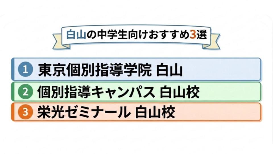 白山の中学生向けおすすめ塾は、以下の3つです。