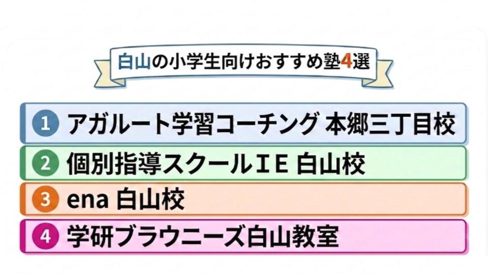白山の小学生向けおすすめ塾は、以下の4つです。